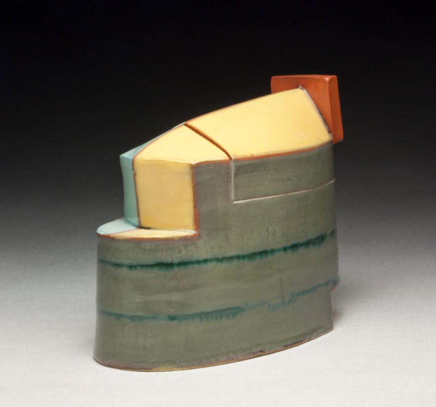 Fielding_14 Published December 10, 2014 at 2669 × 2491 in Portfolio Reliquary. 2012. 8”h x 9”w x 3”d Wheel thrown and altered earthenware, terra sigillata, and glaze. Electric fired. Like Loading...